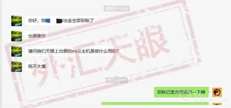 这个维权过程行云流水,几天时间就解决了困扰许女士一年的出金问题,5笔出金都顺利到账!虽然过程很曲折,但是庆幸的是许女士选择了正确的维权渠道,所遭遇的交易问题也顺利得到了解决,在高兴之余许女士还询问了关于天眼云主机的事宜!
