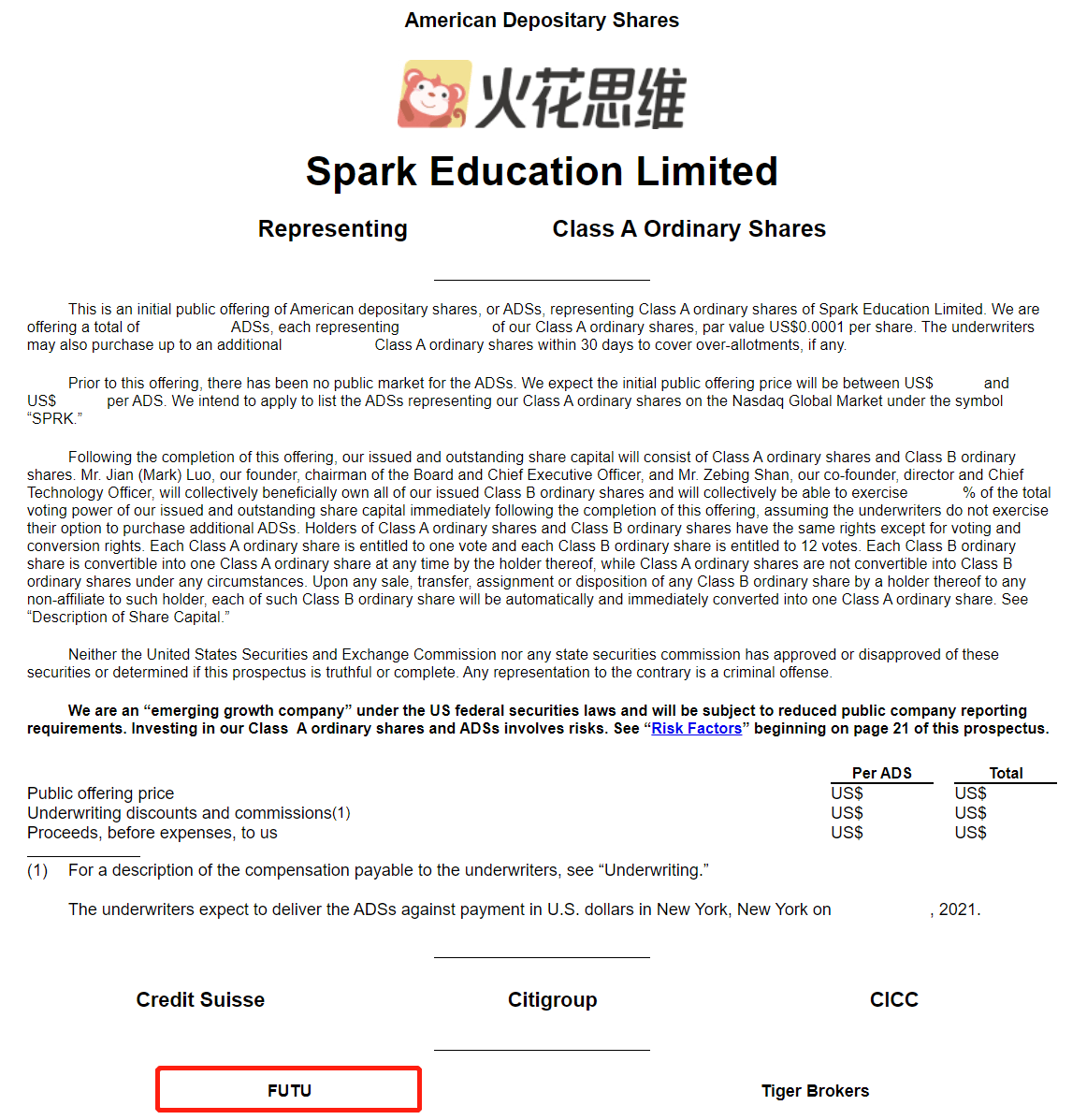 美东时间6月21日,火花思维向SEC递交公开招股书,计划以「SPRK」为股票代码在纳斯达克挂牌上市。富途将与瑞士信贷、花旗、中金等知名机构共同担任此次IPO的承销商,助力火花思维顺利招股。