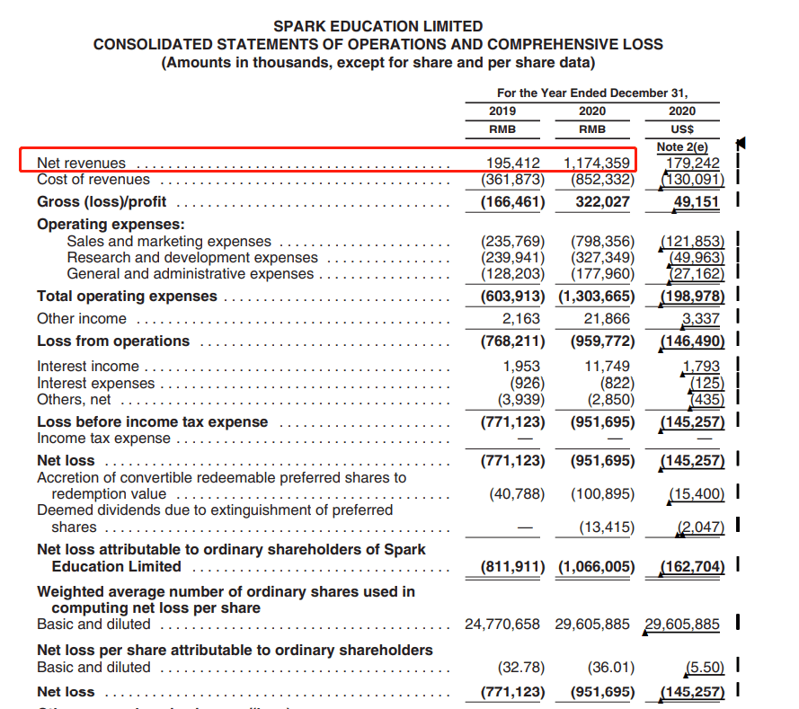 火花思维的财报数据也同样亮眼。招股书显示,火花思维2019年与2020年的营业收入分别为1.95亿元与11.74亿元,同比增长了501.0%。2020年的毛利润也从2019年亏损1.66亿元转为盈利3.22亿元。