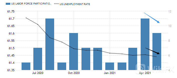 5月份的失业率数据虽然呈现逐渐降低趋势,但是劳动力参与率并未摆脱过去一年中的低位情况。