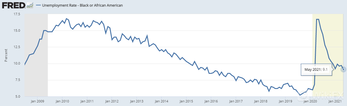 (5月份黑人失业率高达9.1%,仍高于2020年水平)