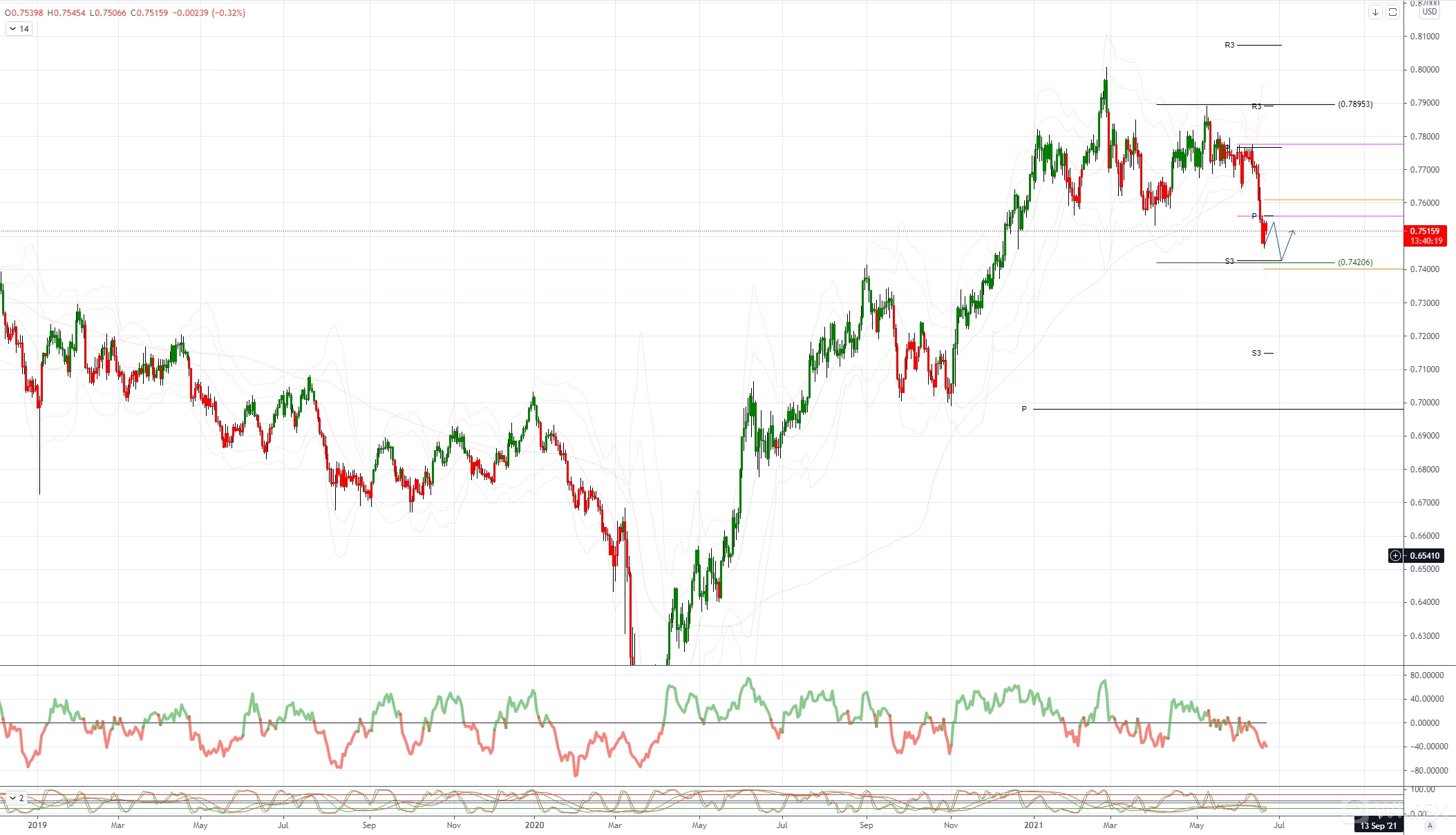 AUDUSD 日内偏差:看跌低于 0.7790 看涨高于