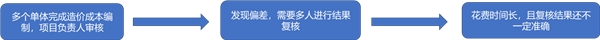 原场景还原:多人同时对多个单体进行造价成本编制,完成后由项目负责人复核或同事之间互审,修改确认后形成最终版项目成果文件。