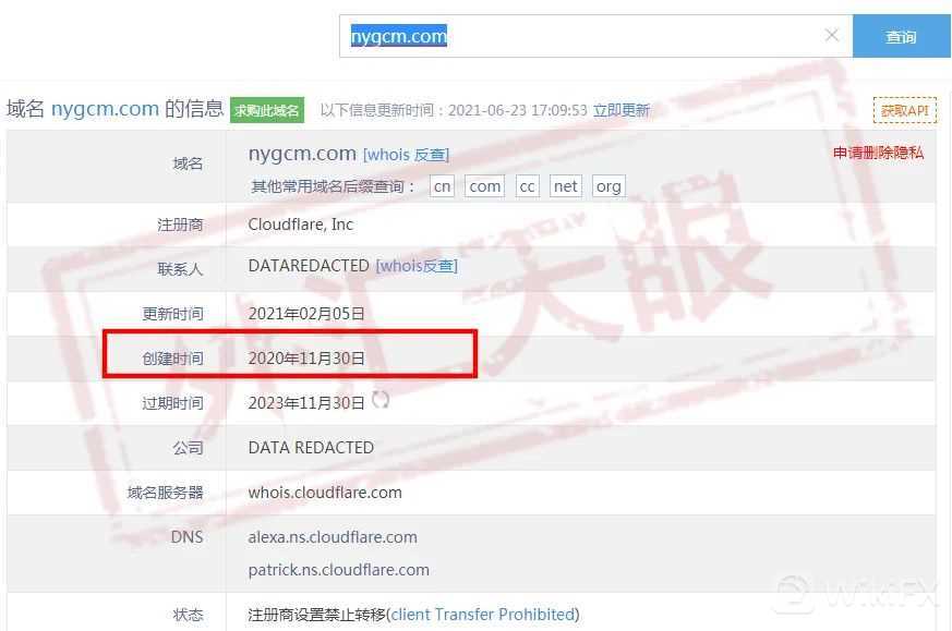 再来回头看,之前的NYFX诺盈开局就来势汹汹,拿着各种全球奖项迷惑了交易者。但是NYFX诺盈进入中国市场的时间很短,的确不应该被所谓的包装外表所迷惑。从域名查询结果显示,中文网站创建时间为2020年11月,距离退市时间为6个月!
