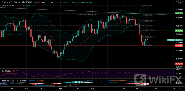 The EURUSD has been trying to recover since Tuesday after falling to a more than two-month low below $1.19 on Monday following the Fed's change in tone last week. The euro took advantage of a dovish tone from Jerome Powell yesterday before a House of Representatives subcommittee to continue its rebound and climb back to $1.1950.