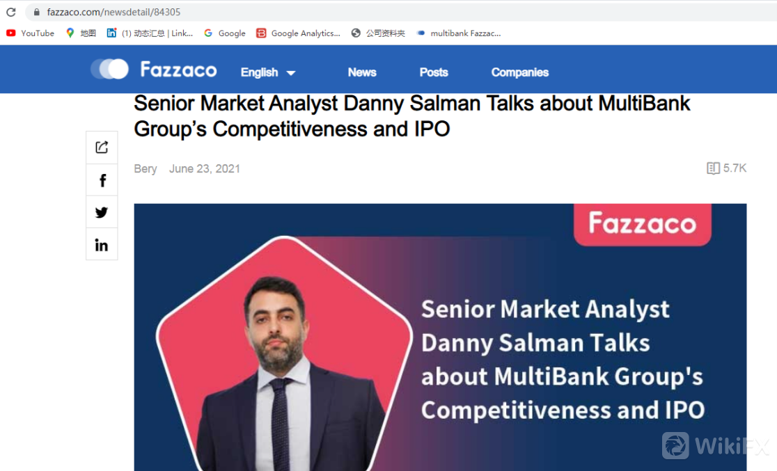 近日,MultiBank Group大通金融集团接受著名媒体Fazzaco的独家专访,MultiBank Group大通金融集团首席分析师Danny Salman代表集团公司出席了本次采访。在采访中,Danny Salman先生主要聊了关于大通金融集团的核心竞争力和IPO方面内容。