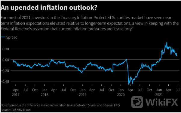 通货膨胀保值证券和其他证券的市场交易显示,投资者押注美联储将以比政策制定者预测的更快的速度加息,这可能是对美联储愿意运行一个“过热”的高通货膨胀经济以确保强劲的就业复苏的信心丧失。