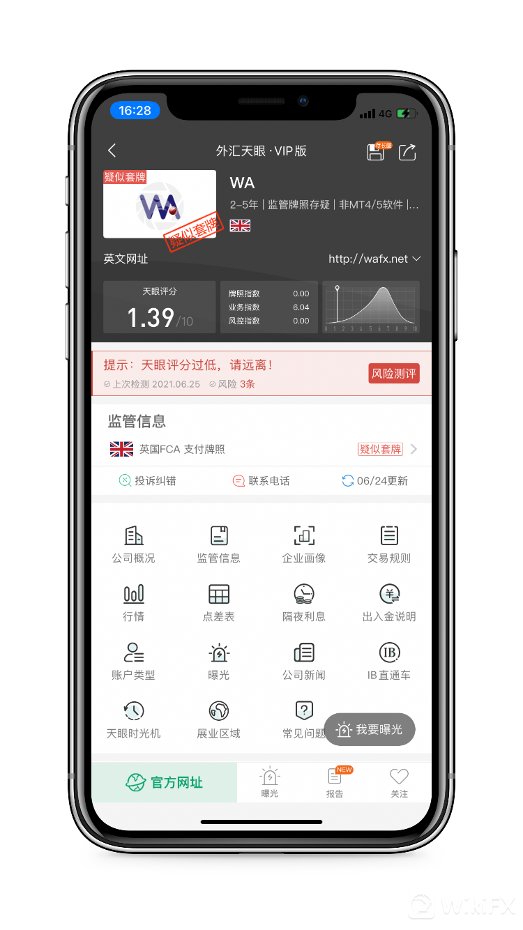 WA,天眼评分1.39分,所持牌照被撤销后,当前没有任何实际有效监管,存在巨大风险,建议投资者提高警惕并远离。