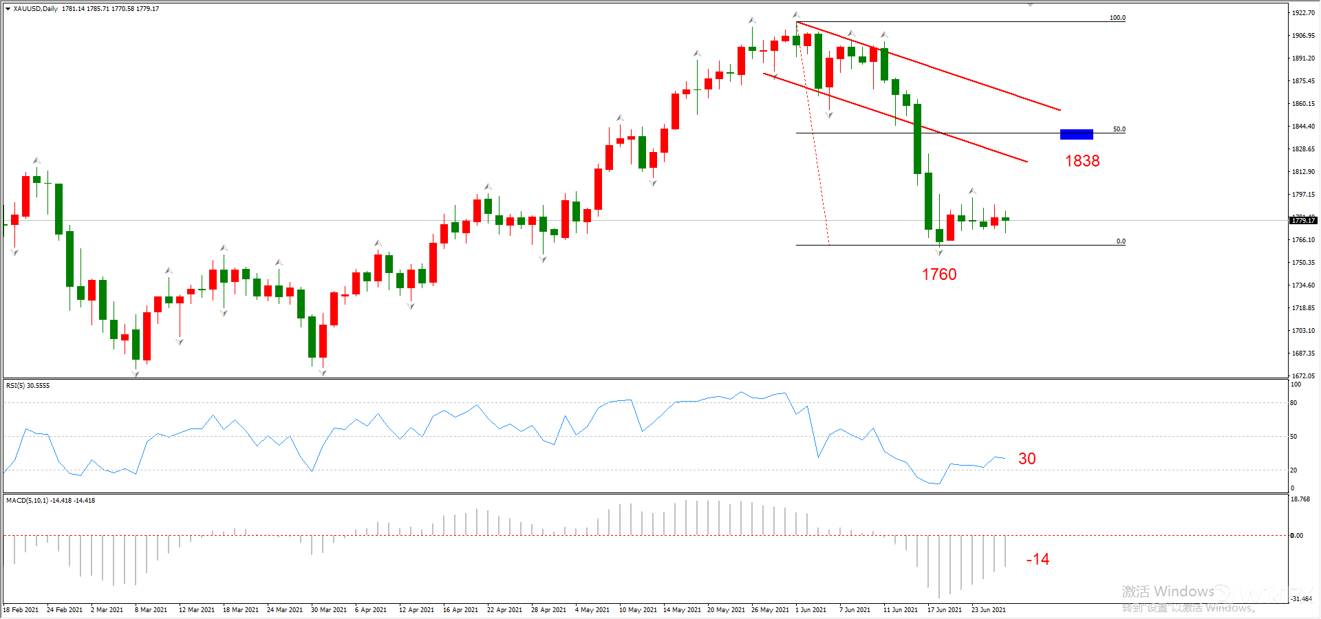 图2,XAUUSD 06月28日 日线级别-ATFX
