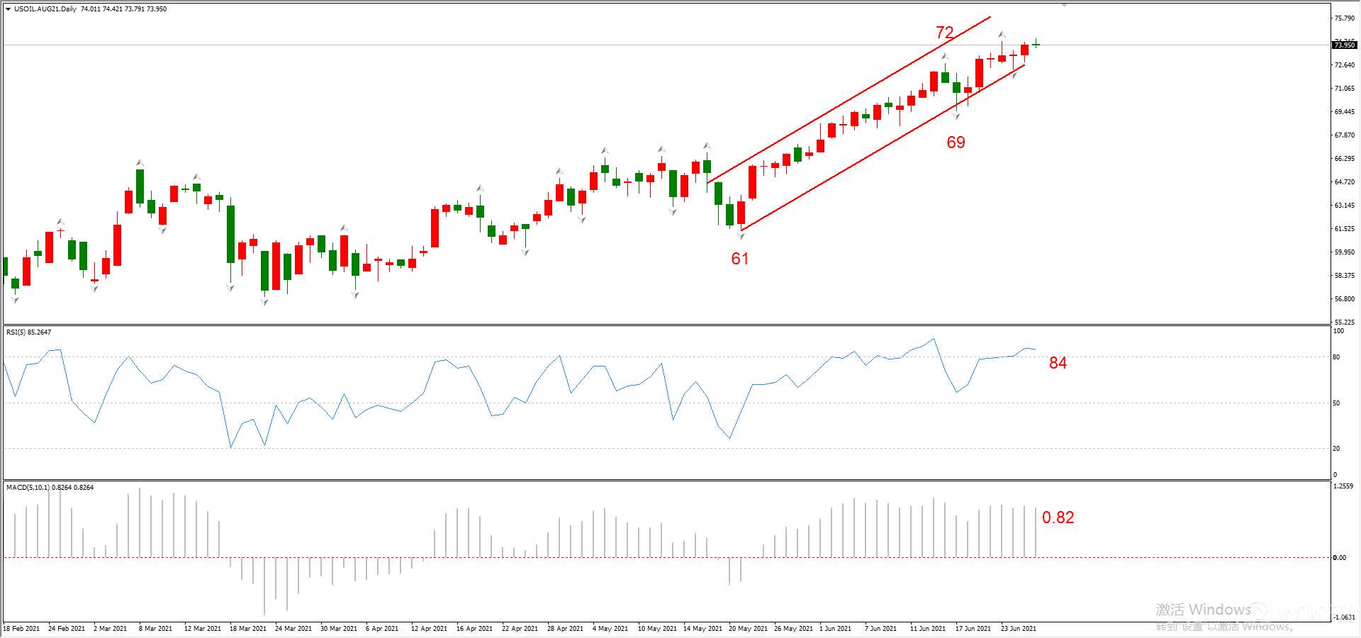 图3,USOIL 2021年8月合约,06月28日 日线周期-ATFX