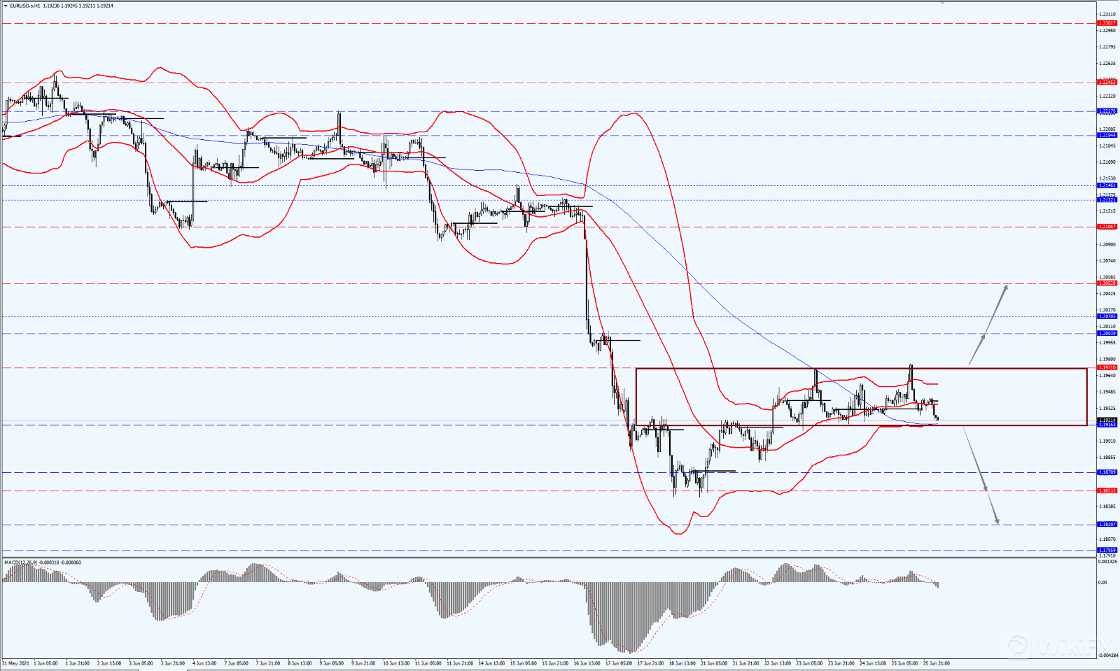 今日,关注欧元在1.1971到1.1916区间的突破方向,如果向下跌破1.1916,届时关注下方1.1853一线的支撑力度;如果向上突破1.1971,将打开进一步的上行空间。