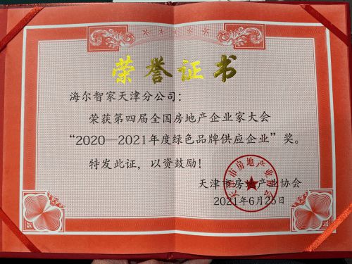 6月25日,由天津市房地产业协会、国家会展中心(天津)共同主办的主题为“构建房地产高质量发展新格局”的第四届全国房地产企业家大会成功举办。在本次大会上,海尔智家荣获“2020—2021年度绿色品牌供应企业”奖。作为房地产开发供应链的代表企业,海尔智家依托三翼鸟全场景智慧解决方案,给用户带来智慧健康新居住体验的同时,助力地产行业绿色发展。