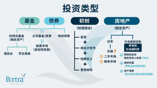 不同的资产类型和它们的价值为了协助您的移民旅程,以下Bartra Wealth Advisors整理了常见的投资选项: