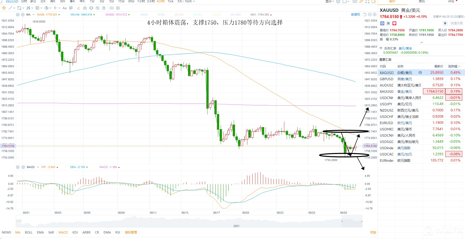 美元指数继续反弹接近前高,因美联储加息预期再起,其次是市场担忧DELTA病毒影响复苏预期,导致避险情绪推动美元走强,目前而言在非农之前不大可能出现明确方向等待数据为主,而非美货币则全线下跌,不过风险偏好而言,纳斯达克指数继续新高,短期偏向于上涨为主,大幅调整的概率不大,受美元反弹影响,金价大跌,同时大宗商品连续下行,等待技术层面的修复,日内而言,美元指数4小时支撑91.8跌破则继续调整上方压力92.5等待方向选择,切勿追涨杀跌