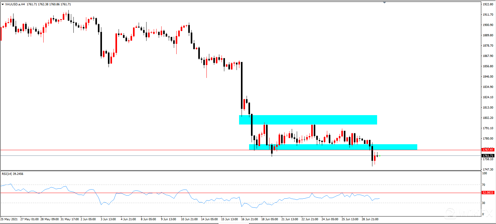 黄金价格在昨日走出了1774-1795的区间,最低来到1750附近。
