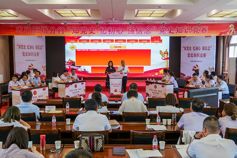 日前,农行河北廊坊分行在辖区举办了“知党史 忆初心 强信念”党史知识竞赛活动。竞赛内容涵盖党史、新中国史、改革开放史以及“四个融合”等方面知识,来自分行机关和各支行的16支代表队参加了比赛。图为党史知识竞赛现场。 文章导航 以“数字化改革”服务偏远山区群众 山西省农村信用社助力乡村振兴规划正式启动