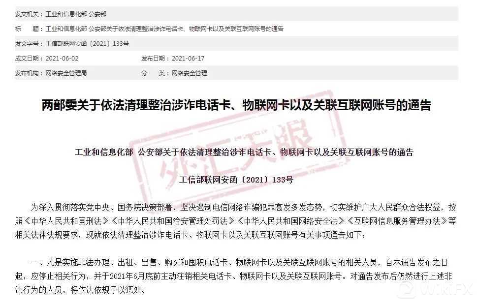 近日,工业和信息化部、公安部联合发布关于依法清理整治涉诈电话卡、物联网卡以及关联互联网账号的通告,勒令持有黑卡的人员于6月底前立即注销黑卡。逾期将依法惩处。