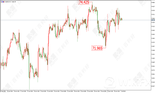 原油方面:油价昨日(6月30日)走势偏向震荡,维持于73-74美元之间,短线方向偏多。