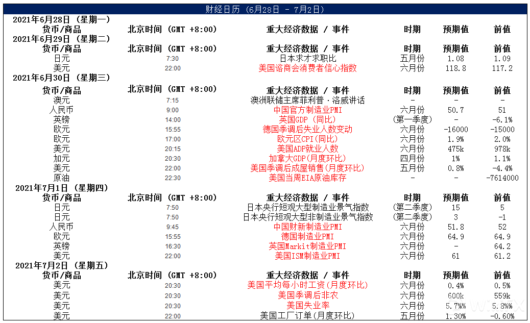 避险货币方面,日内,美元指数基本持稳,主要是因美联储鹰派立场预期增强,以及德尔塔病毒对整体市场情绪影响日益增大,避险需求支撑了美元。不过,月末再平衡模型仍预示美元走软。今晚20:15,美国将公布6月ADP就业人数,目前市场预计将增加60万人。整体来看,美元仍然偏强,修整可能还未完全结束。