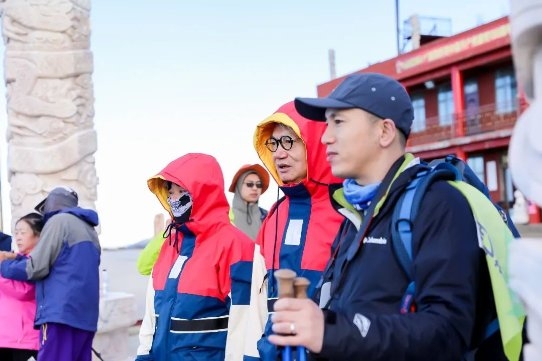 “前几年总是赶上强对流天气,出发前,我们每天盯着天气预报在不停地纠结选一个什么合适的日子出发更好!”回忆起刚开始组织活动的时候,他长吁了一口气,继续说到。“记得2019年,鸿门岩路段修路,我们不得不从张先沟村下车徒步10几公里上东台,晚上便在东台望海寺挂单。后来把大家都安排好后,我们几个保障队的人就没有地方住了,只好挤在民工宿舍大通铺里。那晚,只记得东台好高,风好大,屋内混杂着各种刺鼻难闻的气味,到现在都记忆犹新。