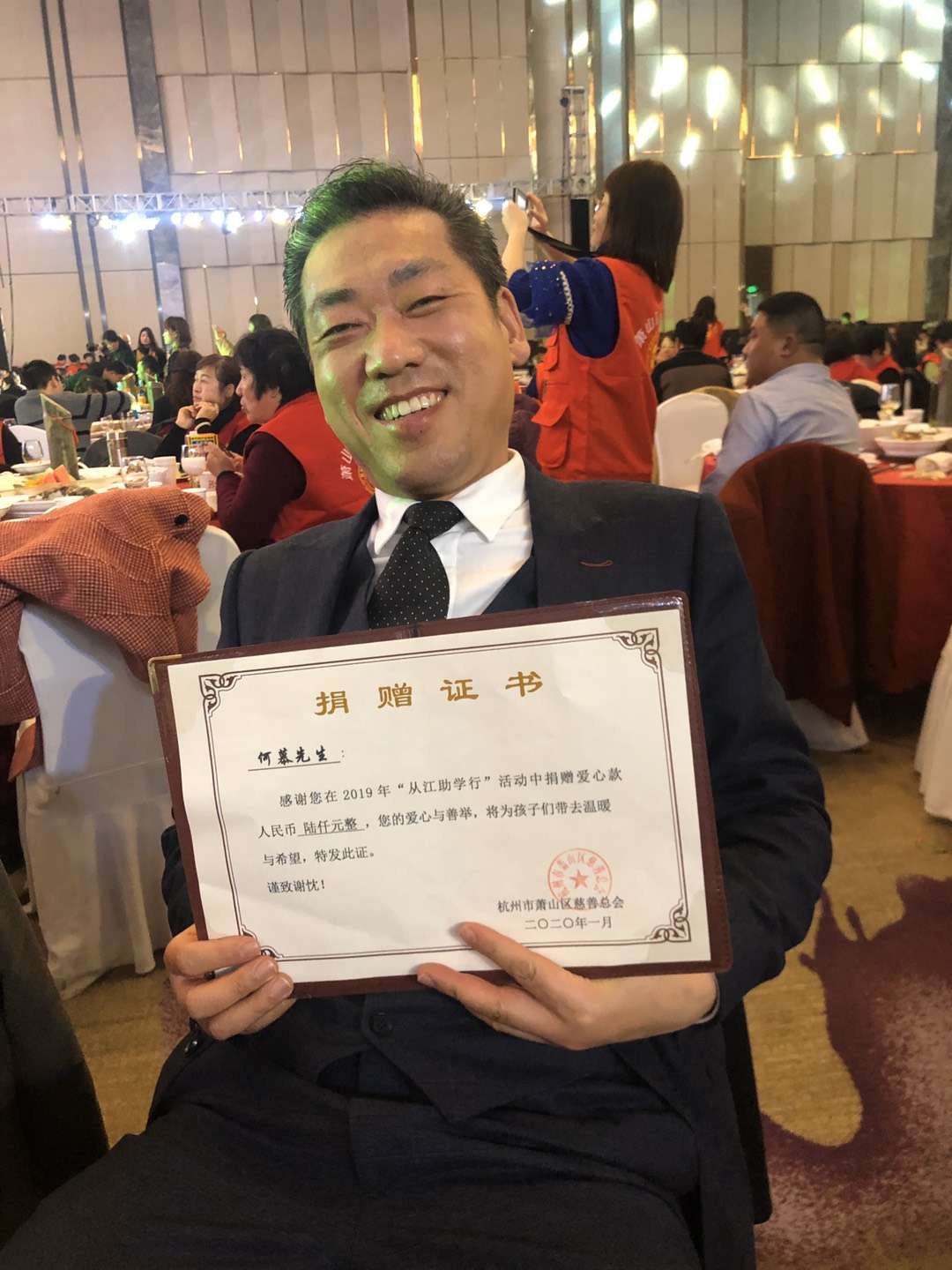 何慕还带着家人一起做公益,并荣获了“公益慈善奖”。