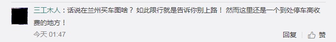 消息一出,网友对兰州双休日汽车限行的措施展开激烈讨论。有网友不解,微博网友“一生相牵ysxq”表示质疑:“老百姓(603883,股吧)买车还有啥意义?”网友“三工木人”也指出:“在兰州买车图啥?如此限行就是告诉你别上路!”