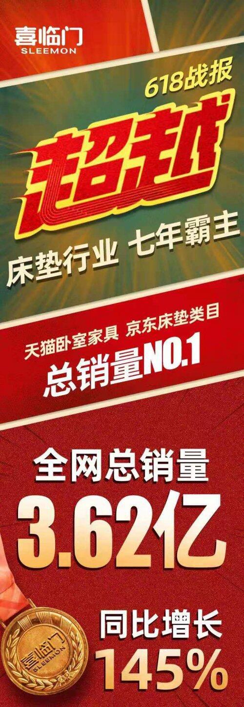 发力传统渠道的同时,喜临门积极探索新零售渠道,积极完善在新零售业务中床垫类目产品的布局, 在天猫、京东官方旗舰店开展店铺直播、总裁直播、与各平台众多头部主播深度合作,以及在众多KOL短视频“种草”加持下,实现业绩、粉丝量、品牌影响力齐增长。仅2021年618期间,喜临门在天猫、京东总销售额3.62亿元,同比暴增145%,远超其他同类品牌,连续7年获得京东平台第一,3年全网第一、天猫平台第一。