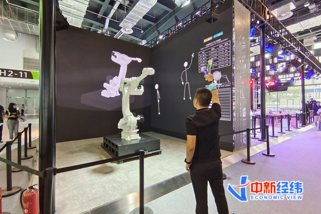 2021世界人工智能大会展示的机器人。中新经纬 常涛 摄