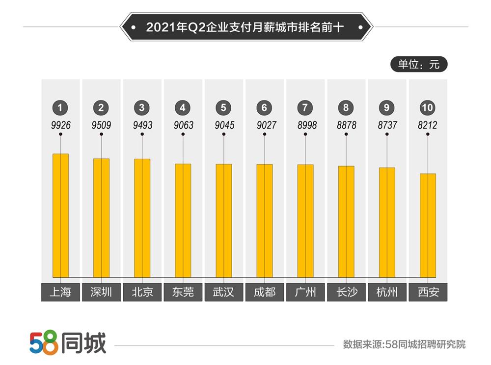 深圳备受求职者青睐,上海平均支付月薪为9926元