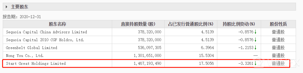 消息面,蒙牛乳业旗下全资子公司Start Great收购中国圣牧10.46亿股份,收购后,累计持有中国圣牧29.99%的股权。下图为截止2020年12月31日,Start Great对中国圣牧的股份比重,未加入最新持股。