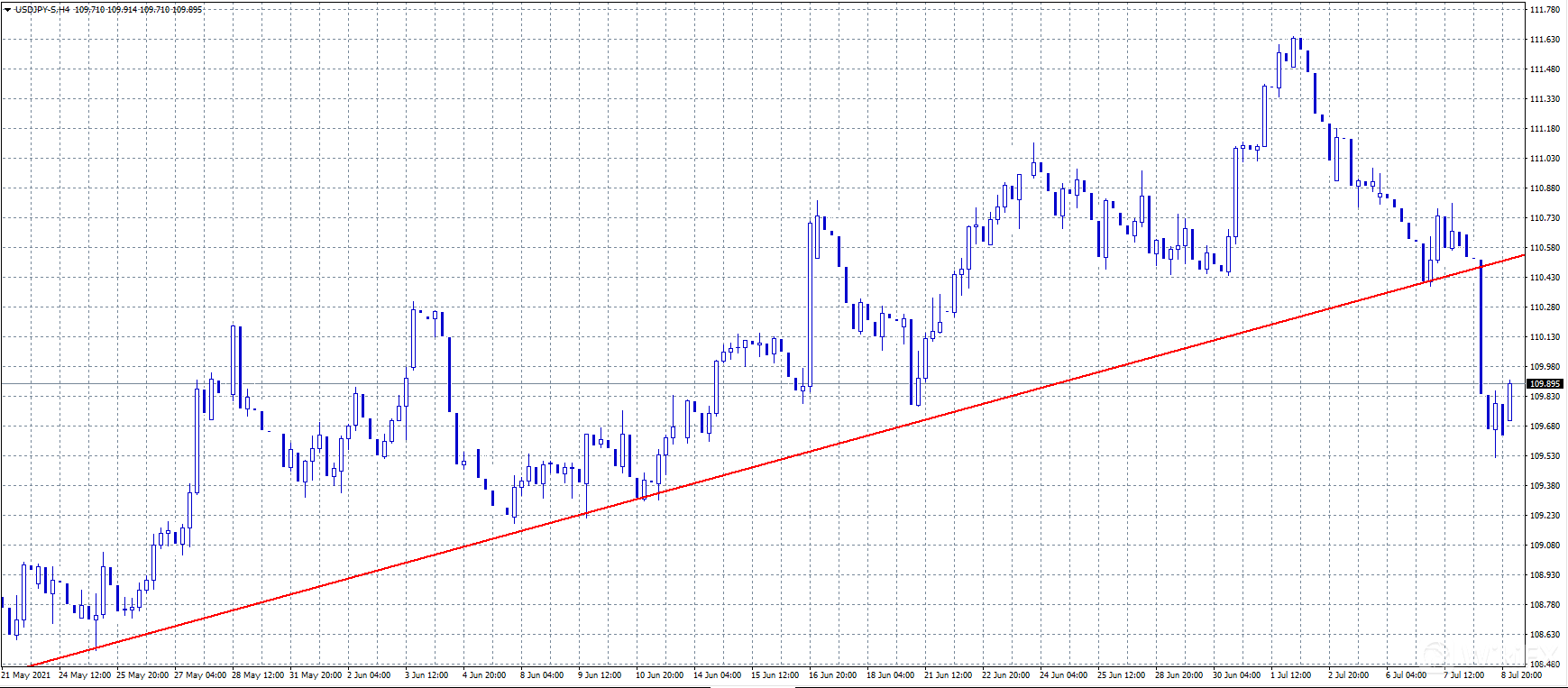 避险情绪占据金融市场,日本首相菅义伟宣布东京进入紧急状态,东京新冠疫情重新蔓延。该措施将持续到8月22日,东京奥运会将不公开举行。此外,由于实施与新冠疫情相关的限制措施,日本央行预计将下调今年的经济增长预测。美元/日元暴跌至近一个月低点109.53,10年期美债收益率跌至1.25%,收于1.29%左右。