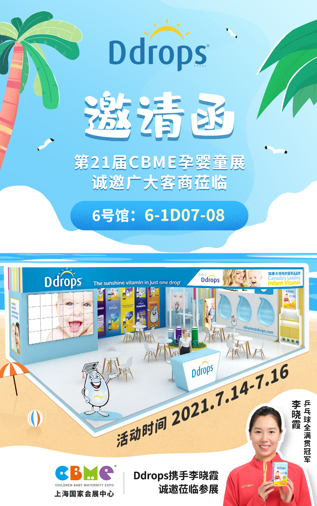 本次展会的最大亮点在于,Ddrops将携手乒乓球大满贯得主——李晓霞一起参与展会,与奥运冠军一起将高品质的营养产品带给消费者以及客户。在展会期间,李晓霞将会接受采访,深度讲述自己选择Ddrops的原因以及自己的育儿知识分享。此外,还特地设置了乒乓球互动环节,让现场粉丝近距离与奥运冠军李晓霞交流乒乓球技,还能获得李晓霞亲自送出的纪念品。