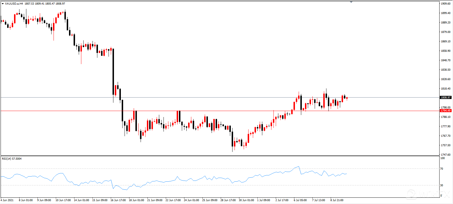 在4小时级别内,黄金在1795形成了比较强的支撑,价格几次试探都没有下破该位置。
