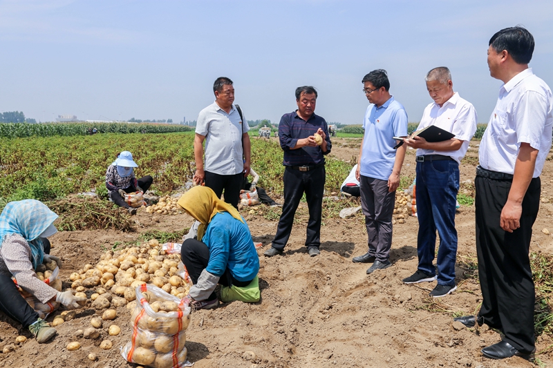 今年以来,农行河北秦皇岛昌黎县支行以服务“三农”为中心,支持当地农村新型经济组织、专业合作社发展。截至目前,该行已向110户专业合作社累计发放2600多万元信贷资金。图为该行与秦皇岛银保监分局工作人员一同在昌黎县新金铺川民菜薯种植专业合作社调研土豆收成、销售及金融需求情况。 本报记者 刘志良 通讯员 刘建敏 摄