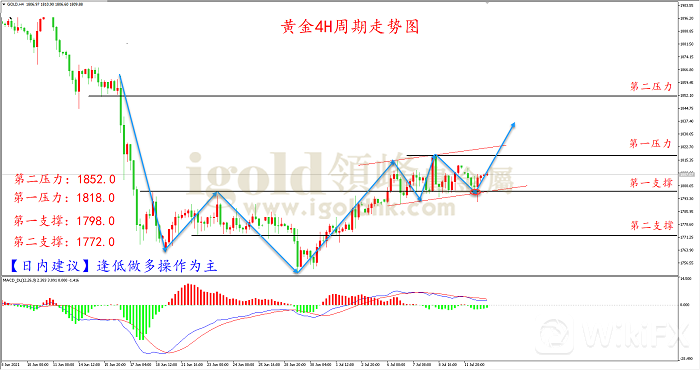 多单:1798.0附近尝试做多,止损1793.0,目标1804.0、1818.0附近。