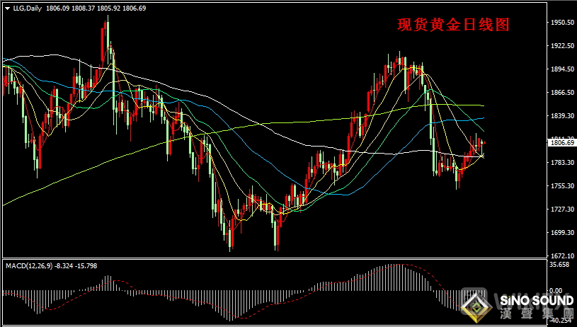 昨晚美盘现货黄金在1800关口附近多空争夺后,金价一度快速下跌最低至1791.77美元/盎司,随后金价再度快速上涨回升,金价重新站1800关口上方至1808美元附近,昨日美盘金价最终报收在1805.92美元/盎司,昨日金价录得长下影线K线走势,金价下跌约0.13%。今日(周二)亚市现货黄金开盘1806.09美元/盎司,早盘金价最低1805.92美元/盎司,金价最高在1808.37美元/盎司,截稿前金价在1807附近振荡运行。