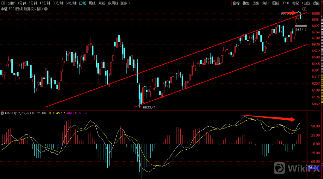 中证500目前处在上升趋势通道的上沿,且目前出现了十五分钟的顶背驰结构,后续大概率可能会维持盘整一段时间,近期谨慎追高,大概率会维持震荡结构。