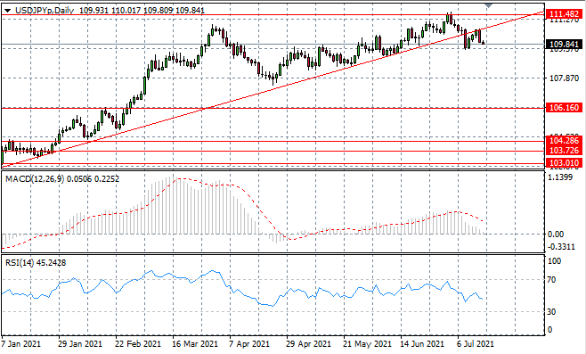 The USDJPY pair has once again rejected the ascending trendline which has developed as a key resistance area. As such, price action is now once again pulling back to the 109.84 price line. The pullback could be the first signs of waning bullish momentum. Momentum indicators have downward trajectories.