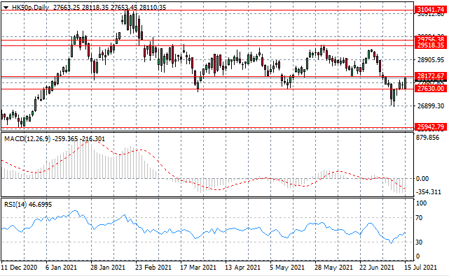 HK50正在向28,172关键阻力区攀升,该价位也是此前的强支撑位。目前需要强烈的看涨信心推动突破。动量指标正在逆转并开始上行。