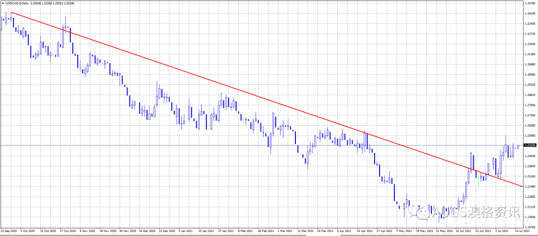 加拿大央行将其隔夜利率目标保持在有效下限0.25%,银行利率为0.5%,存款利率为0.25%。其量化宽松(QE)计划较强和补充了这一点,该计划将每周资产购买规模调整为20亿加元(此前为30亿加元)。这一调整反映了经济复苏持续取得进展。日线图显示,美元/加元上个月在1.2030/1.2010附近形成底部后稳步上行。汇价目前徘徊于1.25附近,需要突破1.2650方能持续上涨。小时图显示,在加央行宣布货币政策后,美元/加元跌至日低点1.2434,但很快反弹。汇价正逐步升向位于1.2650-1.2735的200日均线。上方阻力看向1.2540,接着位于1.2596,下方支撑位于1.2480,接着位于1.2442。