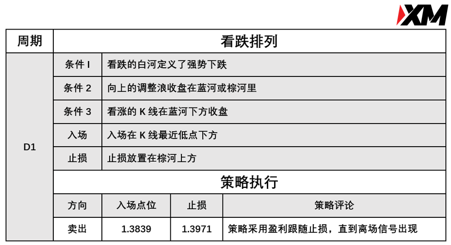 入场价位:1.3839, 止损价位:1.3971,采取盈利跟踪止损策略。
