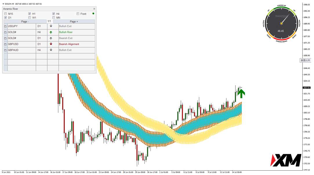 系统显示黄金 GOLD H4级别出现了看涨河流的信号。