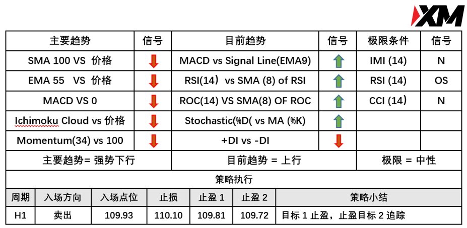 入场价位:109.93,止损价位:110.10,止盈目标一:109.81,止盈目标二: 109.72。