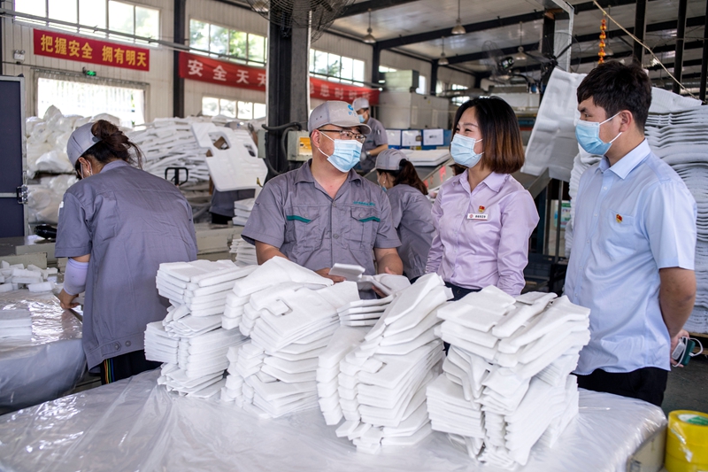今年以来,中国银行河北保定定兴支行积极落实普惠金融政策,以企业需求为中心,扎实服务实体经济,助力企业稳健发展。图为该行客户经理在保定跃飞新型吸音材料有限公司了解企业经营及信贷资金使用情况。据了解,在中行定兴支行500万元信贷资金支持下,该企业完成了生产设备的更新升级,升级后企业年产量预计增加20%。