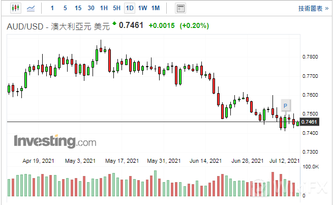 因美6月通胀再创历史新高,美联储官员回应称是时候撤回刺激措施,周三(7月14日)美元指数短线暴涨,并一度突破92.80关口,随后震荡回落。欧元兑美元在区间1.1770至1.1790内震荡,截止目前欧元兑美元在1.1780一线徘徊。欧元兑英镑在区间0.8520至0.8540内震荡。在G-10货币中,商品货币全线走强,纽元兑美元涨幅最大达1.09%。澳元兑美元震荡上行,盘中澳元兑美元突破0.7460关口。纽元兑美元短线拉升,截止目前纽元兑美元在0.7020一线徘徊。