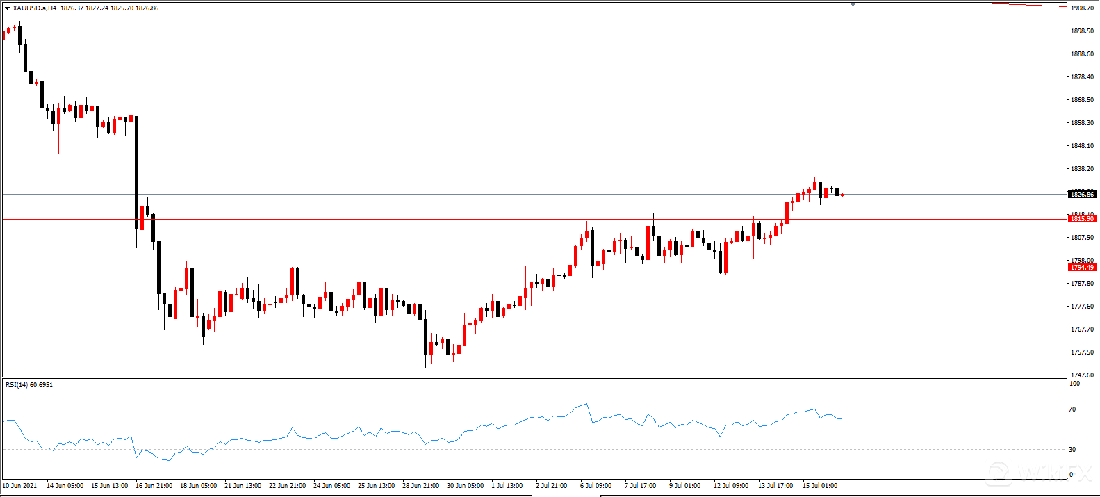 黄金的RSI在50以上,暗示黄金走势偏多。