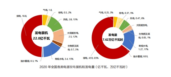 《电力报告》指出,“十三五”期间,我国电力装机结构持续优化,电力工业绿色低碳转型成效显著。截至2020年底,非化石能源消费比重达到15.9%,超额完成“十三五”规划目标;非化石能源装机达到9.8亿千瓦,占全国发电总装机的45%;水电(含抽蓄)装机达到3.7亿千瓦;风电、太阳能合计装机达5.3亿千瓦,生物质发电装机超过2700万千瓦,均超额完成“十三五”规划目标。