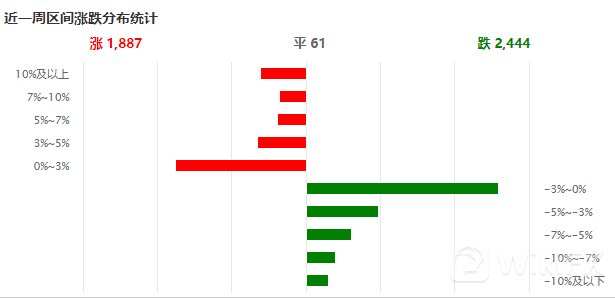 与本周整体录得涨幅的大盘指数稍有背离的是,本周下跌股票家数明显占优,大部分个股均未体现明显的赚钱效应。