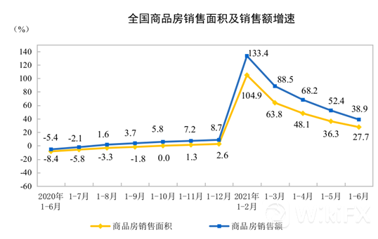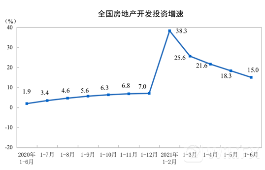 1—6月份,全国房地产开发投资72179亿元,同比增长15.0%;比2019年1—6月份增长17.2%,两年平均增长8.2%。其中,住宅投资54244亿元,增长17.0%。1—6月份,商品房销售面积88635万平方米,同比增长27.7%;比2019年1—6月份增长17.0%,两年平均增长8.1%。