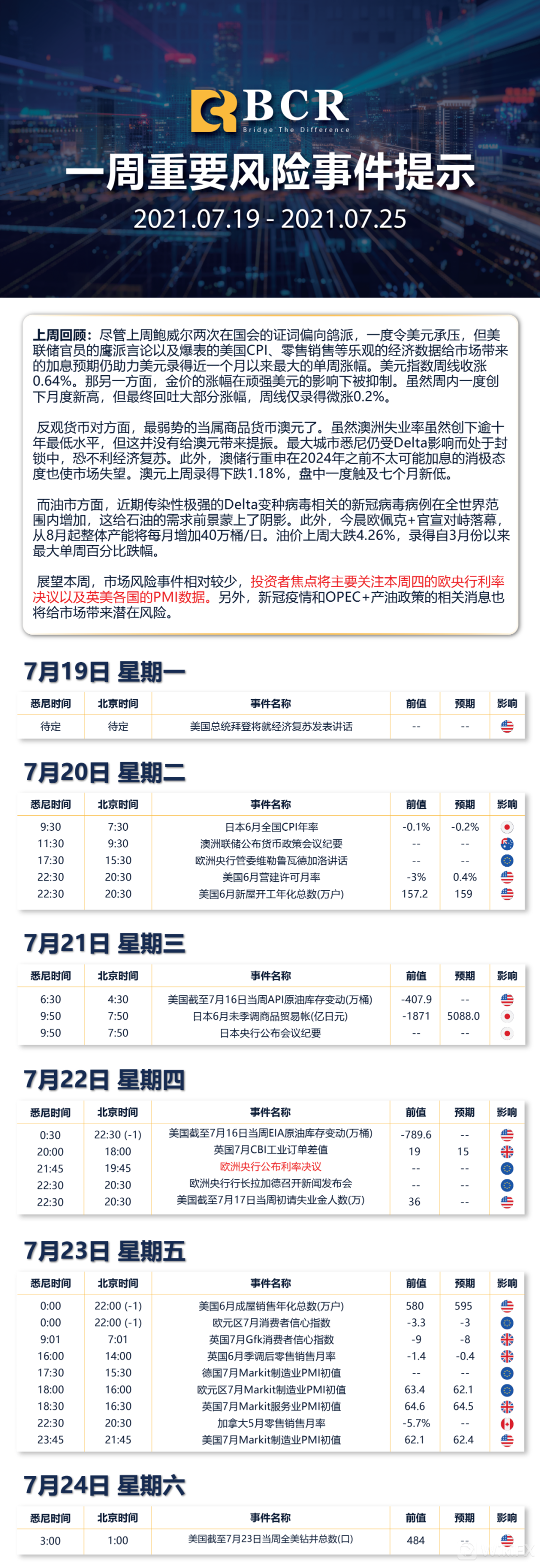 差价合约交易需承担一定风险而且不一定适合所有投资者。在您决定与百汇BCR合作进行差价合约交易之前,请慎重考虑您的投资目标,财务状况,投资需求和经验水平。我们建议您寻求独立金融专业意见,而且您确保在交易之前已充分了解该投资可能涉及的风险。BCR Co Pty Ltd (BCR Global) 接受澳大利亚证券投资委员会(ASIC)监管,监管牌照为328 794,同时也接受英属维京群岛金融服务委员会(BVIFSC)监管,监管牌照号为 SIBA/L/19/1122。
